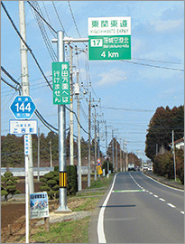 道路通行車両に対して、目的地への方向・距離・著名地点などの交通の目標を明らかにし、道路上の走行位置を教示するとともに交通の円滑と安全をはかる目的で設置しています。